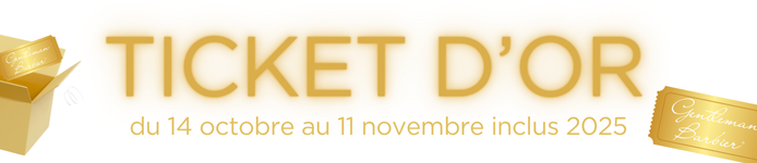 Jeu Ticket d'or ![]() 🧾 RÈGLEMENT OFFICIEL DU JEU « Ticket d’Or – Gentleman Barbier »Organisation La société Gentleman Barbier, dont le siège social est situé au 19 Route de Ste-Marguerite, 63300 Thiers organise un jeu gratuit avec obligation d’achat intitulé « Ticket d’Or », du 14 octobre 2025 au 11 novembre 2025 inclus, exclusivement sur le site www.gentlemanbarbier.com. Conditions de participation La participation au jeu est ouverte à toute personne physique majeure résidant en France métropolitaine (Corse comprise). Une seule participation par commande est acceptée. Toute participation incomplète, illisible, erronée ou frauduleuse sera considérée comme nulle. Avec obligation d'achat de 30€ttc minimum. Principe du jeu Pendant la période du jeu, un Ticket d’Or sera glissé aléatoirement dans certaines commandes passées sur le site www.gentlemanbarbier.com. 4 tickets gagnants seront dissimulés parmi les commandes expédiées. 100 tickets d'or ont été imprimés dont 4 gagnants. Modalités de participation Pour valider leur gain, les gagnants devront :